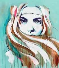 Hannah Adamaszek paints her own unique representation of the world around her. Her style being a fine line between ‘street art’ and ‘fine art’. Her tool box contains decorating brushes, inks, acrylics, spray paint, stencils and plenty of water. She favours her work finished crude and gritty leaving the layers of progress to be admired. Her large scale canvas works search for what’s hidden under the surface of everybody’s life.